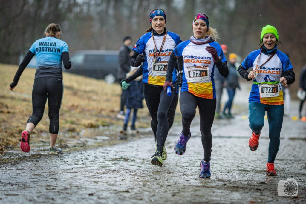 Biegacze zostali skierowani na leśną przecinkę, co oznaczało dodatkowe atrakcje w postaci przeskakiwania nad leżącymi gałęziami (ogiglokami w gwarze poznańskiej). Nie obyło się bez poślizgów i „zaliczenia gleby” przez niektórych uczestników. W takich warunkach dotarcie do strefy zmian z pałeczką w ręku było wyczynem, za który należą się ogromne brawa dla KAŻDEGO z uczestników!